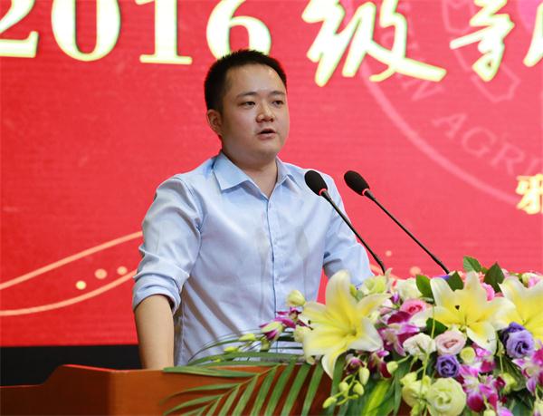 教师代表,以色列本古里安大学博士后、2015年学校引进优秀人才、2016年国家自然科学基金青年科学基金项目获得者、水利水电学院王莹博士,2016年国家自然科学基金优秀青年科学基金项目获得者、博士生导师、林学院吴福忠教授,2016年学校本科课堂教学质量奖特等奖获得者、建筑与城乡规划学院侯超平老师代表全校教职员工向新同学的到来表示热烈欢迎。他们以自己的成长经历告诉大家,未来文盲是没有学习能力的人,要保持好学的状态,不断向未知领域去探索,不忘初心,通往直前。