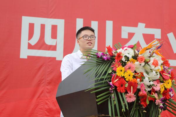 校友代表,原理学院信息与计算科学专业2006级学生、2015年全国大众创业万众创新活动周暨“中国创翼”青年创业创新大赛一等奖获得者,8100万元巨额融资赢得者、受到李克强总理接见的绵阳市天岭中药材开发有限责任公司总经理陈飞宇,原农学院农学专业2010级学生、被保送北京大学生命科学学院植物学专业直接攻读博士学位的王小康,原土木工程学院土木工程专业2009级学生、获得西南交通大学工学硕士、现在英国利兹大学攻读博士的蒙力代表全体校友发言。他们回头审视在母校的日子,告诉新生同学们大学最重要的是学习,最最重要的是从学习的过程中抽象、提炼和升华出一种分析问题和解决问题的能力,培养实践精神,成为一个给父母带去欣慰,给朋友带去温暖,给学校带去骄傲,给社会带去正能量的人。