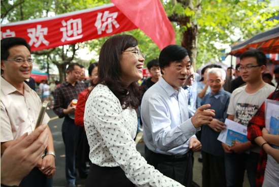 众校领导与前来报到的大一新生及其家长亲切交谈。郑校长表示,感谢家长对川农大的信任,把自己的孩子送来读书。我们校领导同时也是家长,家长的心情是一样的,都希望孩子成才。川农大不会让家长和学子们失望,请家长们放心。郑校长一一询问了前来报到的同学们的志愿填写情况,填写川农大为第几志愿,现在的专业是否调剂。询问到一位文法学院的同学时,同学说自己想读法学专业,但是被调剂到了社会工作。郑校长说:“川农大是可以转专业的,如果一年后你还想学法律,我保证你一定可以转到法律专业!”这番话让同学及其家长感到万分高兴,连连表示感谢。