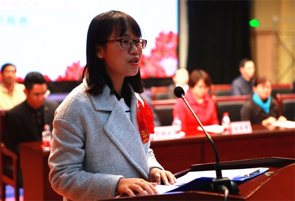 优秀班集体代表,食品学院食品科学与工程2013级3班张雯同学、动物医学院动物医学2012级2班丛亚会同学、旅游学院旅游管理2012级1班何海燕同学以数据说话,分享了打造优秀班级的经验。