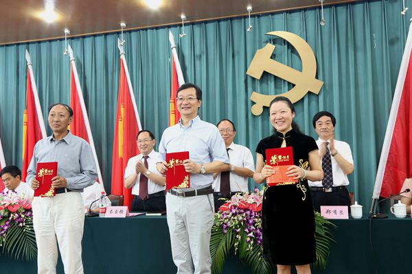 邓良基为获得省级先进基层党组织、优秀共产党员颁奖