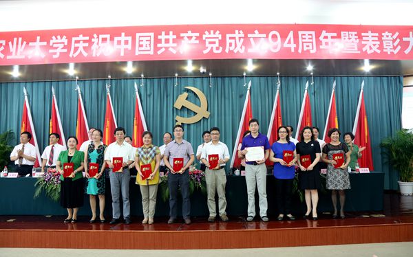 6月30日下午,学校隆重召开庆祝中国共产党成立94周年暨表彰大会,对党的群众路线教育实践活动、“三严三实”专题教育开展以来涌现出的先进集体和个人进行表彰。校党委书记邓良基在会上做了讲话,要求各级党组织和党员干部深入贯彻习近平总书记系列重要讲话精神,认真开展“三严三实”专题教育,扎实推动“四个全面”战略布局具体实践,务必要肩负光荣使命,从严上要求、向实处着力,聚焦忠诚、干净、担当,坚持正身、守规、善为,为开创全国一流农业大学建设新局面而努力奋斗。
