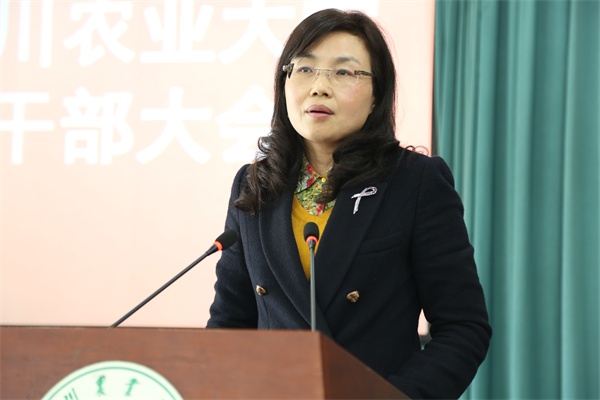 党委书记邓良基代表班子回顾总结了学校2014年工作,同时他和校长郑有良,党委副书记秦自强、庄天慧,副校长张强、朱庆、杨文钰、陈代文、王曙光分别作了述职报告,副厅级调研员何临春作了书面述职。全体校领导从“履职工作特色和亮点”、“存在的主要问题及原因”、“下步工作思路和主要措施”等方面进行述职述廉,内容里有事例、有情节,有数据,把成绩和亮点归功于师生员工,深刻分析自身的差距和不足,彰显了自我净化、自我完善、自我革新、自我提高的勇气。