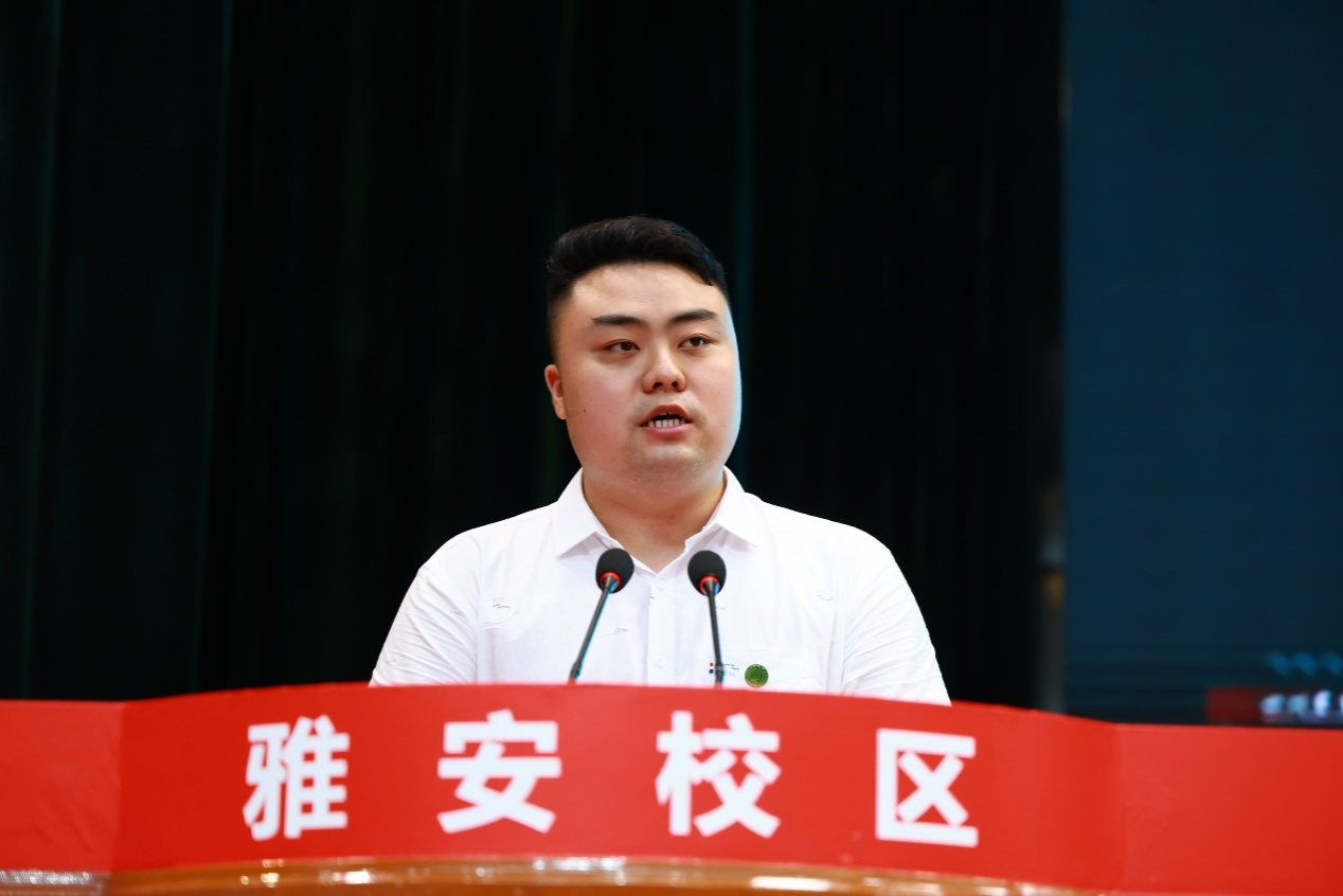研究生新生代表、生命科学学院生物化学与分子生物学专业2023级硕士研究生欧阳宇峻发言,表示将明确目标、学会学习,博采众长、厚积薄发,志存高远、知行合一,将牢记总书记嘱托,厚植爱农情怀,练就兴农本领,在乡村振兴的大舞台上建功立业,积极贡献新一代川农人的青春力量。