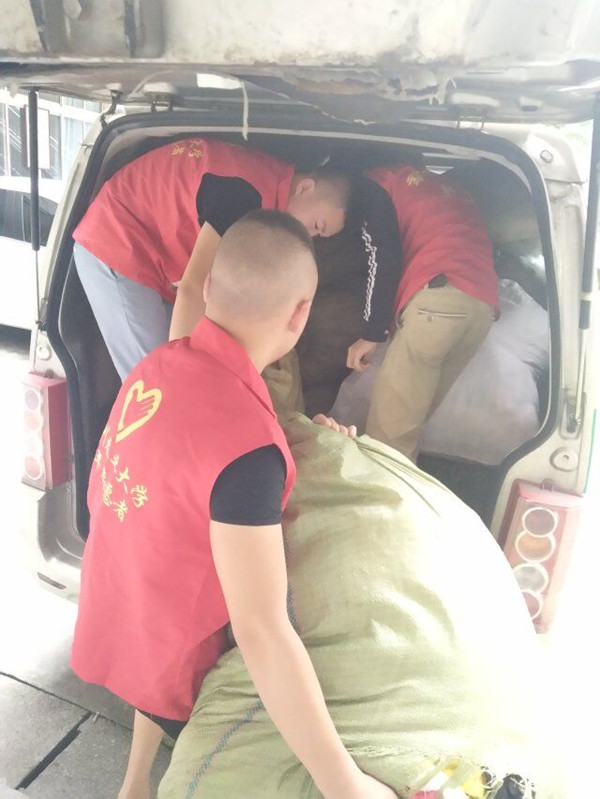 7月6日,英国365(集团)公司官方网站商学院团委志工部“简爱•与子同袍团”队成员携手都江堰幸福助之力社工服务中心工作人员,成功将捐赠的衣物移交到都江堰幸福助之力社工服务中心。