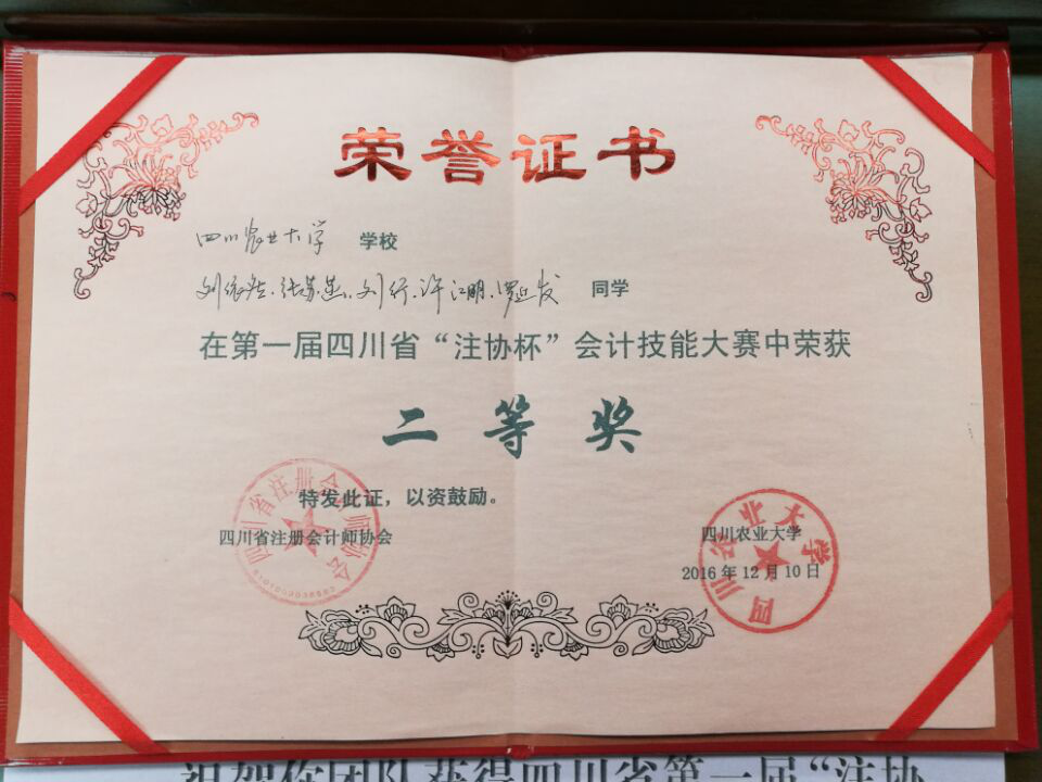 2016年12月10日,在由四川省注册会计师协会和我校共同主办的四川省第一届“注协杯”会计技能大赛决赛中,商学院财务管理专业学子荣获省二等奖。