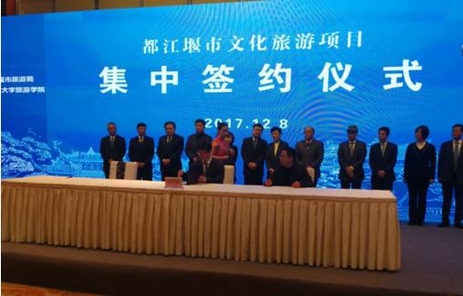 12月8日,都江堰市休闲旅游高端沙龙在成都市锦江宾馆举行。成都市旅游局党组书记罗建民、都江堰市市委书记卢胜等14位市级领导、成都万达文化旅游城等60余家企业高管出席此次活动。期间,旅游学院院长杨启智与都江堰市旅游局局长杨波签署了共建都江堰市旅游大数据中心的协议。