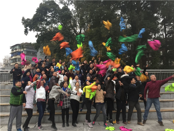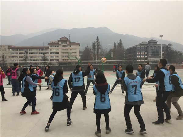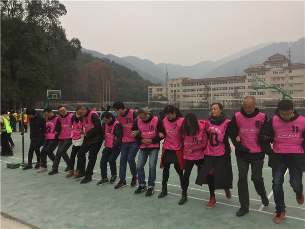12月12日下午,都江堰校区举办的“创建一流团队,提升专业贡献”教职工素质拓展活动在篮球场举行,校区6个部门工会的80多名教职工参加活动。