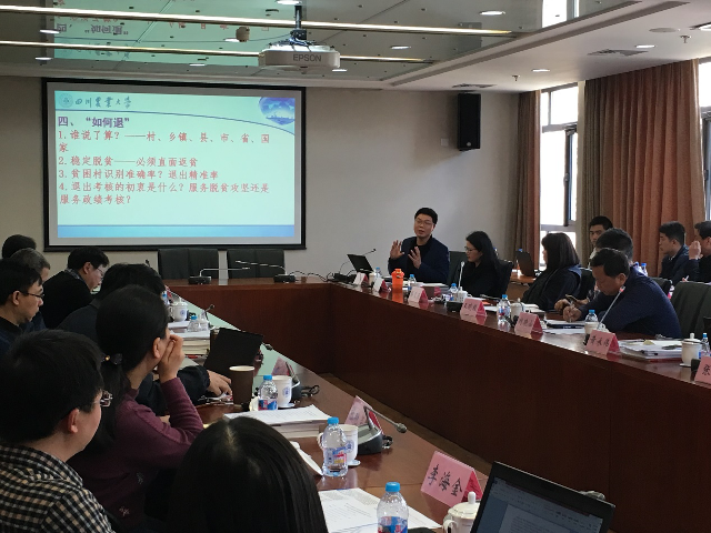 上午,与会专家重点围绕如何深化我国精准扶贫精准脱贫战略、如何更加精准推进脱贫攻坚工作等开展深度研讨。蓝红星副教授在会上做了题为《脱贫攻坚中可能的“盲点”——基于第三方评估视角》的主题报告,该报告基于我校2015年、2016年承担的四川省省级脱贫攻坚验收考核第三方评估工作调研的发现,深入分析了精准扶贫中的四方面的“盲点”,并提出了对策建议,受到了与会者高度关注;下午,相关专家还就“中国扶贫攻坚前沿问题研究”丛书的撰写工作进行了讨论交流。据悉,该套丛书是“十三五国家重点图书工程”,我校西南减贫与发展研究中心主任庄天慧教授牵头负责《多维贫困与贫困治理》专著的撰写工作,该丛书将于2017年扶贫日(10月17日)在北京举行首发仪式,献礼党的十九大。
