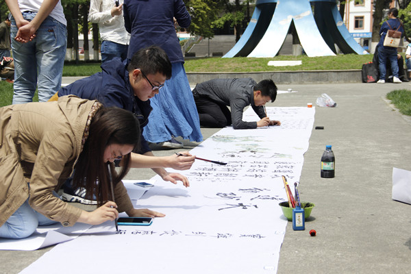 5月11日下午,由都江堰校区学生会举办的主题为“致远书香社会,凝望美丽川农”书画大赛在校区银杏林圆满画上句号。