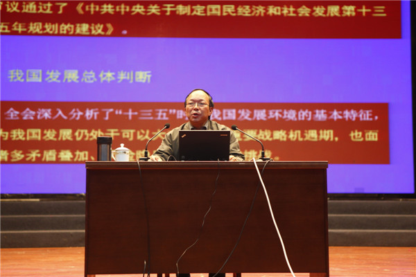 邓良基从十八届五中全会内容、核心举措入手,就“十三五”规划建议宏观背景、指导思想、发展原则、目标要求以及新理念新举措新变化等方面作了系统解读,强调实现十三五规划目标必须坚持“四个全面”的战略部署、和“五个发展理念”。并结合四川省委十届七次全会精神和“两学一做”学习教育,要求学员要确立远大的理想信念,学用结合,注重修为,积极响应“三个倡导”,落实“三实”,正道善为,努力争当合格的共产党员,争做合格建设者和可靠接班人。现场互动频繁,气氛活跃。