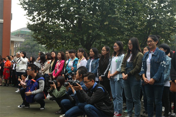 两位校友代表站在“校友林”碑两旁,共同为“校友林”揭牌。参与仪式的百余名师生、校友代表热烈鼓掌。