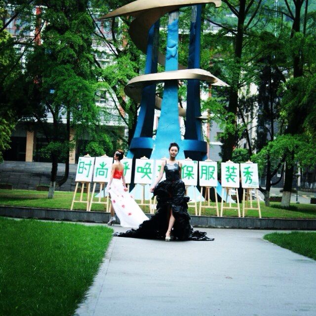 4月21日,在4.22世界地球日即将到来之际,由都江堰校区学生团体联合会主办,公关礼仪协会、环境保护协会共同承办的 “时尚呼唤环保”环保服装秀在校区银杏林举行,