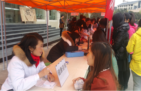 另讯,3月6日上午,都江堰校区医院联合青年爱心协会红十字小分队在校园内开展了主题为“发扬‘自尊、自信、自立、自强’精神,争做时代新女性”的义诊活动。义诊项目包括健康咨询,测量身高、体重、视力、血压、体温等。
