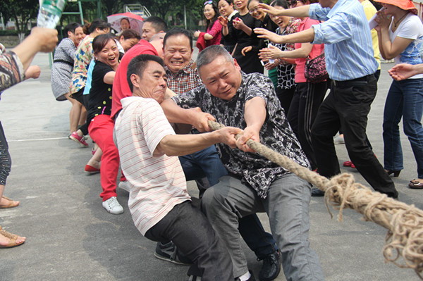 随着裁判一声“预备”,双方队员即进入“战斗”状态,双手紧握麻绳,双脚用力着地,身体微向后倾,参赛队员齐心协力凝成了一股绳!哨声一响,只见参赛的队员们紧握长绳,卯足了劲拼命往后拉,有的脸憋得通红丝毫不放松,有的龇牙咧嘴用尽浑身解数,女职工们更是不甘示弱,一个个咬紧牙关,将巾帼不让须眉的精神风貌挥洒得淋漓尽致。自发组织的拉拉队也毫不逊色,加油声、呐喊助威声直入云霄。现场激烈的比赛将整个活动推到了高潮。