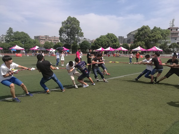 上午和下午,分别有两场大型游戏“撕名牌”及“三角拔河”,许多同学前来参与,他们在赛场上挥洒汗水、激烈拼搏,一时间全场都洋溢着热情的气氛。尤其是游戏“三角拔河”更是体现了同学们的团队合作精神。主办方还举行了社联各部门的友谊赛,既让社联的工作人员能参与进游戏,获得乐趣,又增进了部门间的感情。