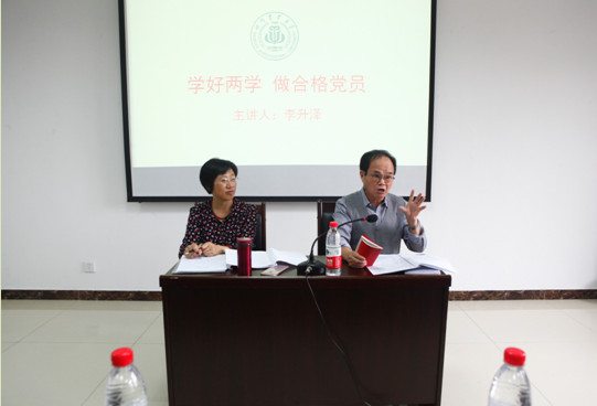 会议特邀都江堰校区商学院退休党支部书记李升泽老师做了“学好两学,做合格党员”的专题报告。李老师在重温党章、党规和学习习近平总书记系列重要讲话的基础上,解读了“两学一做”的深刻内涵,阐释了开展“两学一做”的必要性、现实性及深远意义,分析了做合格党员要着力解决的“理想信念动摇、意识淡化、宗旨观念模糊、精神不振、道德行为不端”等五大问题,明确了合格党员务必要做到“四讲四有”,并联系实际畅谈了自己的学习体会。