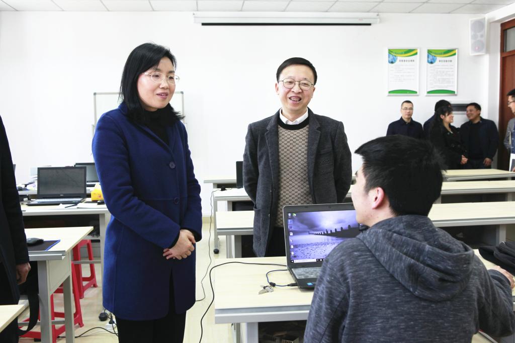 庄天慧来到建筑与城乡规划学院制图实验室,与学生亲切交谈。得知这位建筑学专业的同学刚刚与用人单位签订了就业协议后非常欣慰。