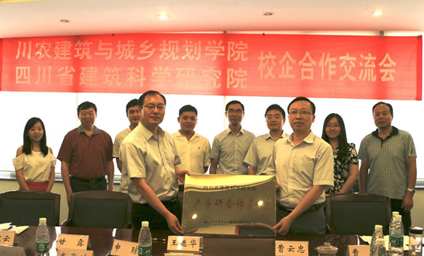 7月16日下午,建筑与城乡规划学院与四川省建筑科学研究院校企合作签字仪式暨交流会在省建筑科学研究院举行。省建筑科学研究院院长王德华、党委书记邓胜权、总工程师吴体、建筑与城乡规划学院党委书记申琼、副院长曹云忠、副院长曹迎等出席上述活动。曹云忠与王德华代表双方签订了“人才培养与产学研合作”协议,并共同为双方“产学研合作基地”揭牌。