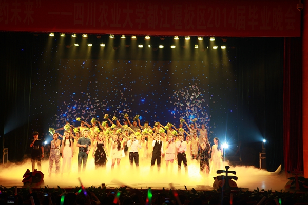 晚会舞台美轮美奂,节目丰富多彩,多元的校园文化尽诉珍惜离别和未来相约。合唱《送别》拉开晚会的序幕。舞蹈《it’s me》、歌舞《课间十分钟》展现着建筑与城乡规划学院和土木工程学院的同学们学中作乐、睿智激情的青春活力;《广寒秋月》以茶艺为主题,展现了旅游学院学子的优雅魅力以及中华传统文化的独特韵味;商学院学子吉他弹唱《那些花儿》,唱出了毕业学子的依依留恋。节目中还有少数民族同学演绎的异域风情歌曲《哎呀》和蒙古族舞蹈《月狐吟》,传统与现代融合的时装秀,学生自己改编的诗歌朗诵《那一年我们的梦想》,毕业生为主唱的电声乐团奏演的《再见》,描写顽强拼搏不屈不挠的现代舞《从头再来》,刻画求职心态、并为实干精神点赞的小品《求职那些事儿》,以及演绎同学情同兄弟、姐妹般的深厚友谊的舞蹈《毕业照》。在《我们和未来有约》嘹亮歌声中晚会圆满落幕。