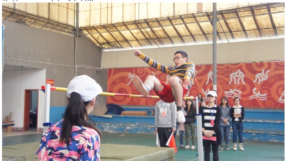 4月26日上午, 阳光明媚,天气暖和。都江堰校区在风雨球场上进行了男子跳高比赛.