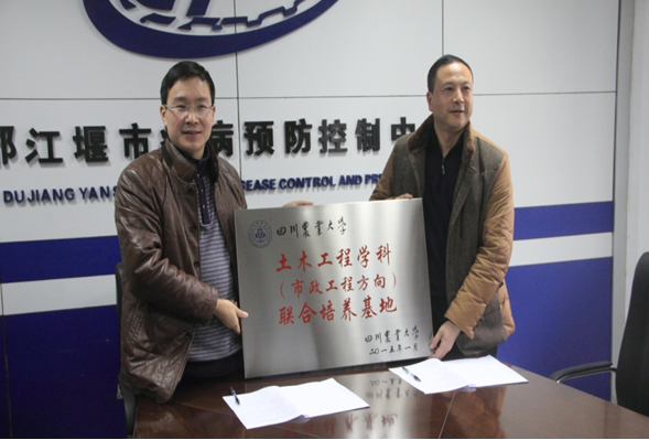 1月29日,土木工程学院与都江堰市疾控中心共建土木工程学科(市政工程方向)联合培养基地签约及授牌仪式在都江堰市疾控中心会议室举行。都江堰市疾控中心主任、书记朱江,副书记江波,副主任汪涛、岳素华、吴兵,土木工程学院院长朱占元教授,学院行政办、市政工程系负责人及相关教师和研究生参加仪式。