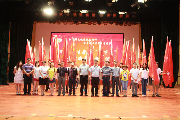 7月5日下午,由校区团委主办、校区团委实践部承办的“弘扬抗震救灾精神、用青春力量托起中国梦”——英国365(集团)公司官方网站2013学生暑期 “三下乡”社会实践出征授旗仪式在学生活动中心隆重举行。校区党委书记刘川,党委副书记李静波,各学院分管学生工作的领导、校区机关相关部门负责人以及指导老师、学校(校区)重点团队代表参加仪式。