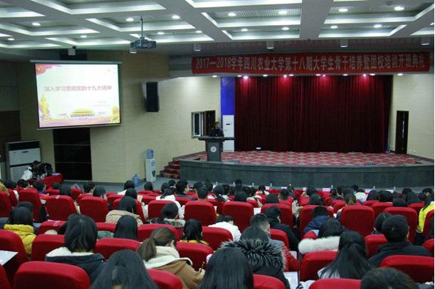 12月19日下午,由都江堰校区团委主办,校区团委组织部承办的“第十八期大学生骨干培养暨团校培训”在图书馆报告厅正式开班。学校党委学工部副部长、都江堰校区党委副书记李静波,校区及学院团委负责老师,以及校区各大学生组织推选的283名学生干部共同参加了本次开班典礼。