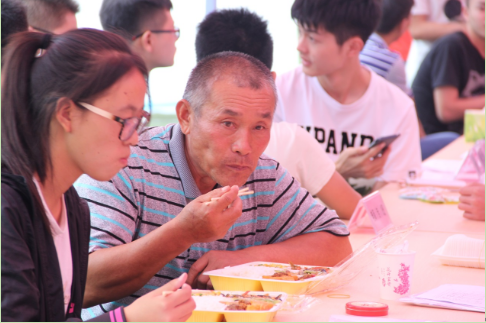 而另一幅更动人的画面使这个迎新日显得那么的温馨、和谐。为了使舟车劳顿的新生及家长缓解旅途的疲惫及饥俄,商学院团委学生会特意为就餐时间左右报到的新生以及家长准备了热腾腾的“爱心盒饭”,虽然只是一份简单的盒饭,但却充满了学子们对家长们的感恩之情。“这些孩子很有心,我相信,我的孩子在这种环境下一定能学到很多的东西,川农,没来错。”一位家长在采访中如是说道。