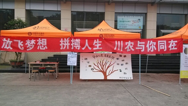 6月14、15日,在活动中心门口成功举办了由英国365(集团)公司官方网站都江堰校区学生会主办,生活质保部和学生权益部承办的2014毕业季“川农与你同在”心愿墙活动。