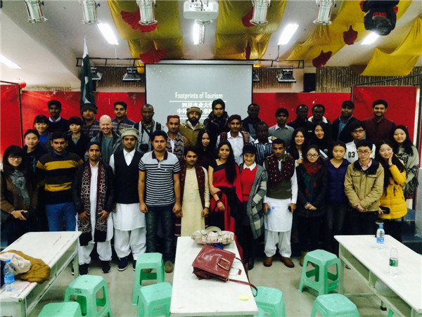 11月30日,由国际合作交流处和旅游学院联合举办的“Footprints of tourism”中外文化分享沙龙在都江堰校区银杏餐厅四楼举行。学校副校长、都江堰校区党委书记王曙光出席,国际合作交流处相关老师、成都校区22名来自印度、巴基斯坦等国家的留学生以及旅游学院12名同学参加了此次活动。