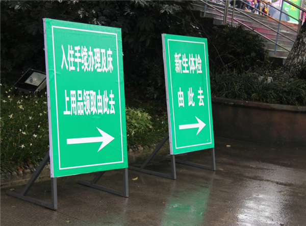 清晰的住宿流程办理图让新生和家长可以很轻松、快捷的办理好公寓入住手续。在学校的主干道上,也有“公寓入住手续办理由此去”的提示牌,通往寝室的路上,去往各栋新生宿舍的路线标志也简洁明了。