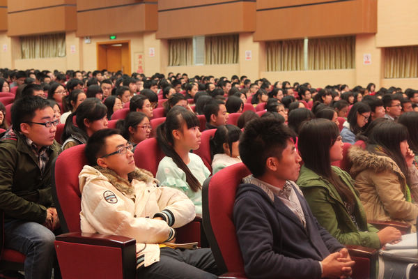 吴德教授用自己的成长经历告诫同学们,要多倾听大师的教诲,要树立目标,要管好自己、拒绝诱惑,要不断挑战自己,要静下心来,慢慢走,脚踏实地,一步一步实现自己的梦,共筑川农梦,共圆中国梦。