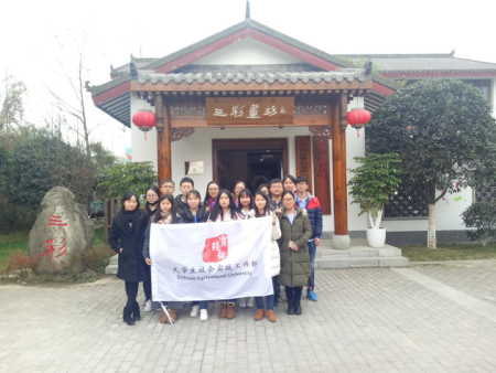 1月7日,“年画娃娃”团队的成员走进德阳市锦竹年画村,只见白墙、黛瓦、朱漆和那色彩斑斓的年画,让前往实践的学子们叹为观止;绵竹年画博物馆里那陈列着的各式各样的年画工艺品木雕年画、石雕年画、年画瓷盘,将蜀绣与年画完美结合的刺绣年画更是让他们啧啧称奇。