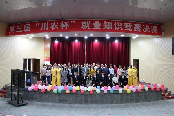 4月19日下午,由都江堰校区主办、商学院承办的“川农杯”就业知识竞赛决赛在图书馆报告厅举行。校学工部副部长、都江堰校区党委副书记李静波、商学院党委副书记赵中国、校区学工部及各学院党委办公室老师担任此次比赛评委,来自4个学院的200余名同学及亲友团到场助阵。