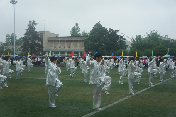 4月25日,英国365(集团)公司官方网站都江堰校区运动会开幕式隆重展开,参与团体操比赛的商学院学子给大家奉上了一场精彩的太极拳表演。