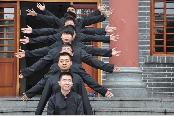 远处山如眉黛,近处笑靥如花。雅安校本部古香古色的第一行政楼永远是学子们争相留影的“最爱”。林学院林资专业的一个班级的14位同学巧遇动物营养专业的6名研究生,大家索性站到一起,千姿百态地来了一连串的合影,他们认为这张“偶遇”纪念照拍得特别有味道。