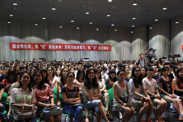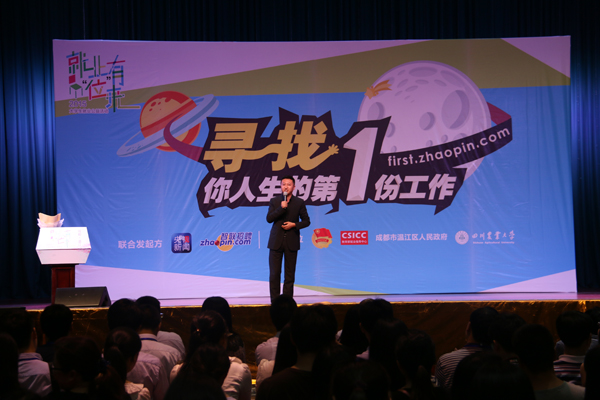 5月29日,央视新闻中心携手智联招聘共同举办的大学生就业公益行动“就业有‘位’来”成都见面会在成都校区麦立方隆重举行。央视主持人郎永淳、柴璐等分别分享了自己初入职场时的经历,助力同学“寻找人生的第一份工作”。党委副书记秦自强,副校长张强等和1600多名学子共同聆听了分享会。