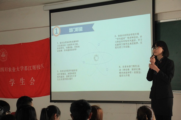 为进一步加强学生干部队伍建设,3月29日中午,由校区学生会主办的第一届“部门大讲堂”在1213顺利举行,校区学生会全体成员参加。