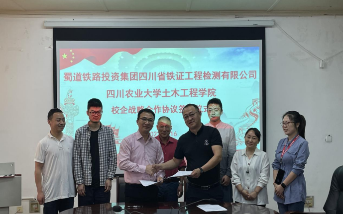 3月16日下午,土木工程学院与蜀道铁路投资集团四川省铁证工程检测有限公司在学院2305会议室举行战略合作协议签约仪式。双方协定在工程检测、新型混凝土材料、健康监测等领域开展科研攻关、人才共享、产业融合等方面共谋校企双赢。四川省铁证工程检测有限公司总经理伍俊一行三人、学院党委书记何仁辉、党委副书记赵中国、学院相关老师等出席签约仪式。