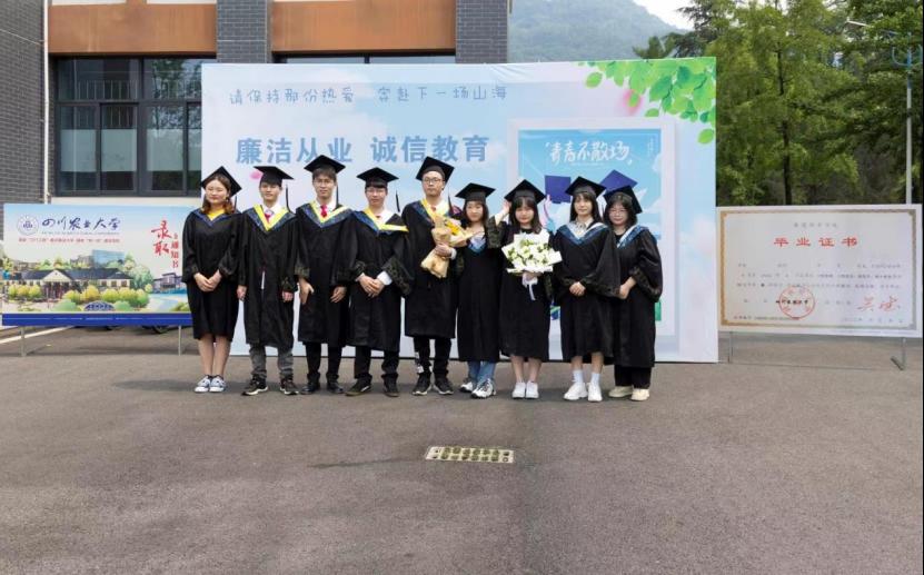 在6月9日上午学院举行的2022届毕业生授位典礼上,优秀学生标兵、推免至四川大学攻读硕士学位的张琪同学带领355名毕业生,举起右手向母校、向未来,以青春的名义,庄严做出承诺,永葆廉洁初心。授位典礼后,毕业生共同前往2教A区教学楼门前,在“毕业生廉洁从业倡议书”签名墙上签名。