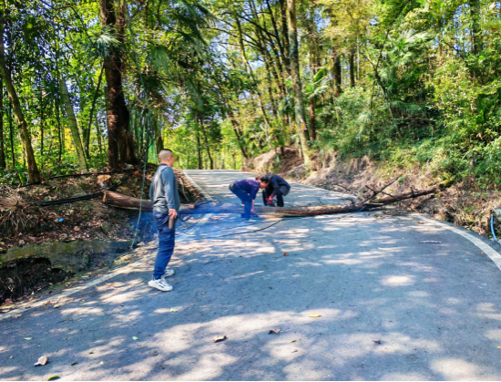精准排查安全隐患。梳理、铲除林区人口集聚区及防火重点区的杂草落叶,消除火患;全面清理林区道路边枯木、枯枝,排除枯树倒地、枯枝坠落危险,确保林区道路通行安全。