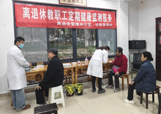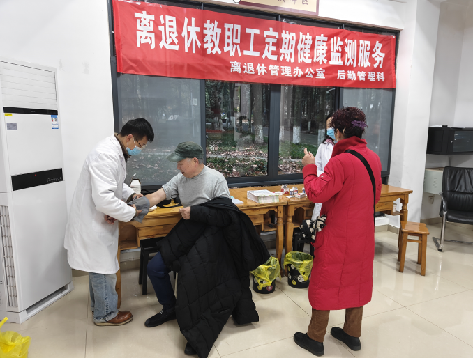 12月11日,英国365(集团)公司官方网站办后勤管理科联合离退休管理办在离退休教职工活动中心,举办了“关爱离退休教职工”为主题的健康监测活动,为离退休教职工送去关爱。
