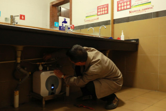 自小厨宝设备到位后,后勤管理科工作人员面对安装过程中可能出现的各种问题,仔细研究、探讨以确定最优质的方案进行布线、开孔、安装,最终确保外接电源走线即安全又美观。即使小厨宝自带漏电保护器和绝缘阀,工作人员也对小厨宝做了全面评估,并在正式投入使用前,多次对小厨宝进行了测试。同时将每台小厨宝的水温调节在接近人体的温度,防止师生烫伤。此外,后勤管理科每天安排专人对设备进行检查和检修,以确保设备正常、安全使用。