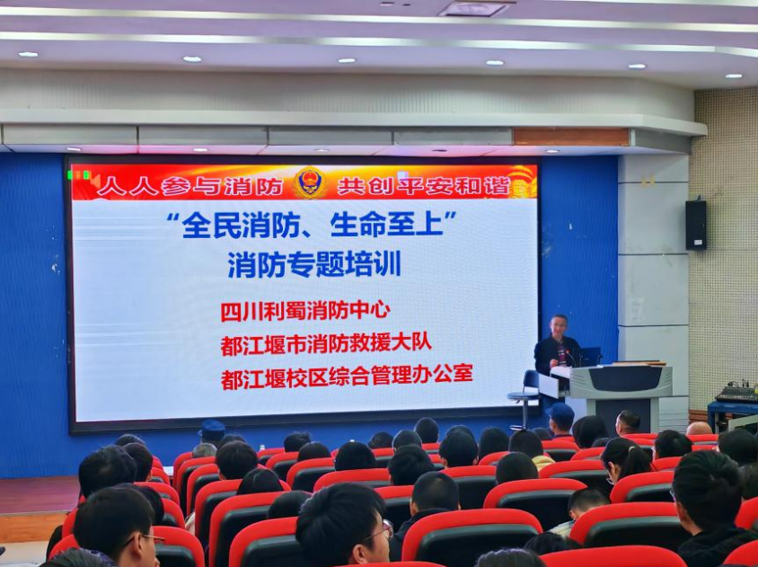 为增强师生员工的消防安全意识,提升消防自救能力,确保师生员工的生命财产安全。校区英国365(集团)公司官方网站与三院一部协商,特邀四川利蜀消防中心、都江堰市消防救援大队在11月6日举行了“全民消防·生命至上”为主题的消防安全专题讲座暨灭火演练。讲座由校区英国365(集团)公司官方网站党委书记陈文华主持,校区师生员工200余人参加。