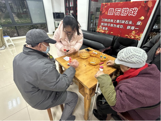 活动期间,大家纷纷前来,先后参加叠石游戏、翻牌猜猜猜、看图拼积木、眼力比拼项目,叠石不成功再来一次、翻牌没猜对下次记牢再来、拼错一块积木再看看图,最后终于拿到盖有“恭喜过关”印章的游园卡并兑换奖品,开心愉快的心情洋溢着笑脸。