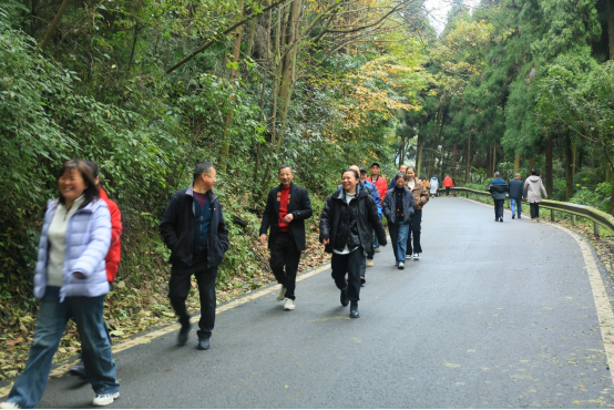 初冬时节,灵岩山教学科研实习基地十分幽静,山林间火红的枫叶、焦糖色的梧桐叶、深红的杉叶,还有常绿的阔叶树木,各种颜色交相辉映,给人一种无尽的美感。教职工们个个精神抖擞,呼吸着新鲜的空气,沿着山路迈着矫健的步伐一步步迈向终点。大家三两结伴而行,一边走一边亲切交流,相互鼓励、欢声笑语,享受着一路美好的风景和运动的快乐。