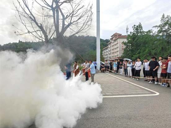 讲座中,刘鹏豪教官以鲜活的生活场景为切入点,通过抽丝剥茧式讲解,将防震减灾应急处置、常见安全隐患识别等消防知识转化为可触可感的安防指南,筑牢师生的消防安全思想防线。随后张为指导员手执灭火器展开分步演示,通过"原理剖析+动作拆解"的精准示范,构建起完整的应急处置知识框架。参训师生在"手把手指导+沉浸式实操"的闭环训练中,成功打通理论认知到实践运用的转化通道。