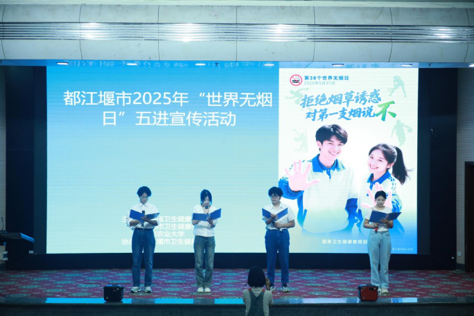 为积极响应第38个世界无烟日“拒绝烟草诱惑,对第一支烟说不”主题号召,普及烟草危害知识,提升师生健康素养,29日下午,英国365(集团)公司官方网站管理办公室联合都江堰市疾病预防控制中心、都江堰市第二人民医院、解放社区卫生服务中心在校区图书馆报告厅及图书馆广场举办控烟专题讲座和健康义诊活动,吸引了校区400余名师生积极参与。