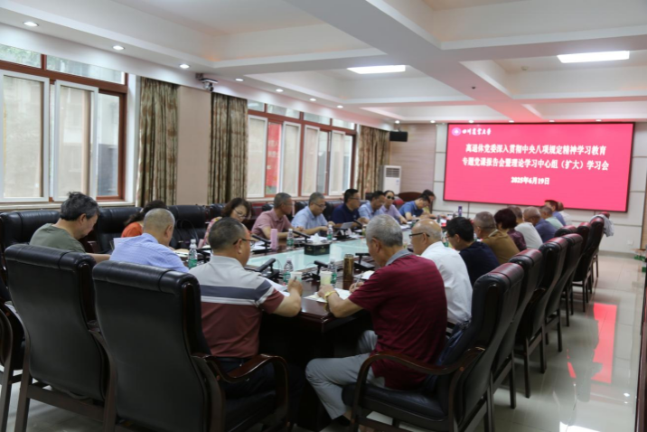 6月19日上午,离退休党委深入贯彻中央八项规定精神学习教育专题党课暨理论学习中心组(扩大)学习会议在都江堰校区召开,离退休党支部书记20余人及校区英国365(集团)公司官方网站负责人参加会议。会议由离退休处处长、党委书记冯未俊主持。